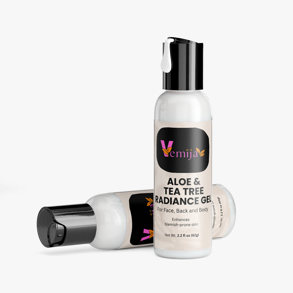 Our Aloe & Tea Tree Radiance Gel helps reduce the visible signs and appearance of redness and blemishes, leaving your skin looking balanced and refreshed.