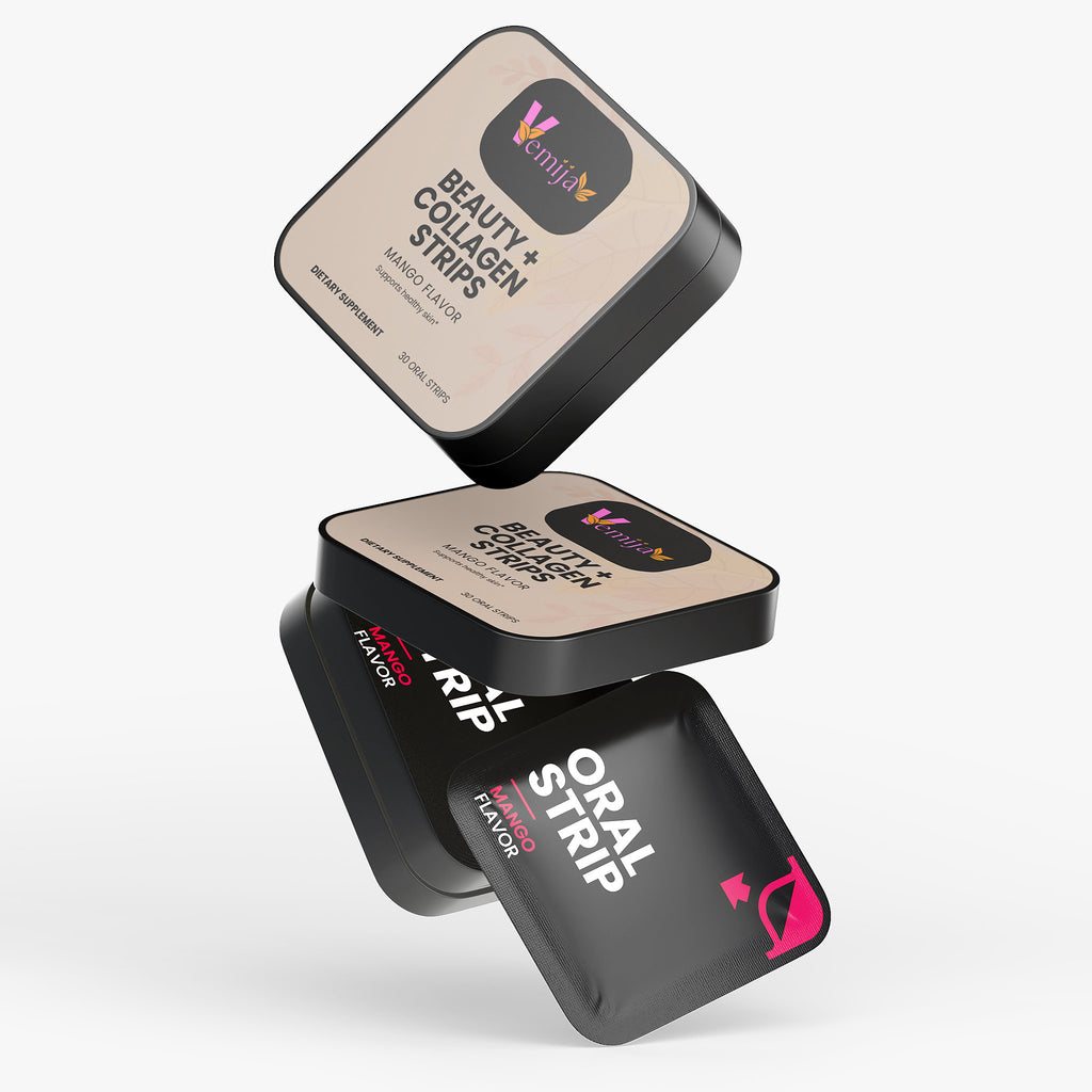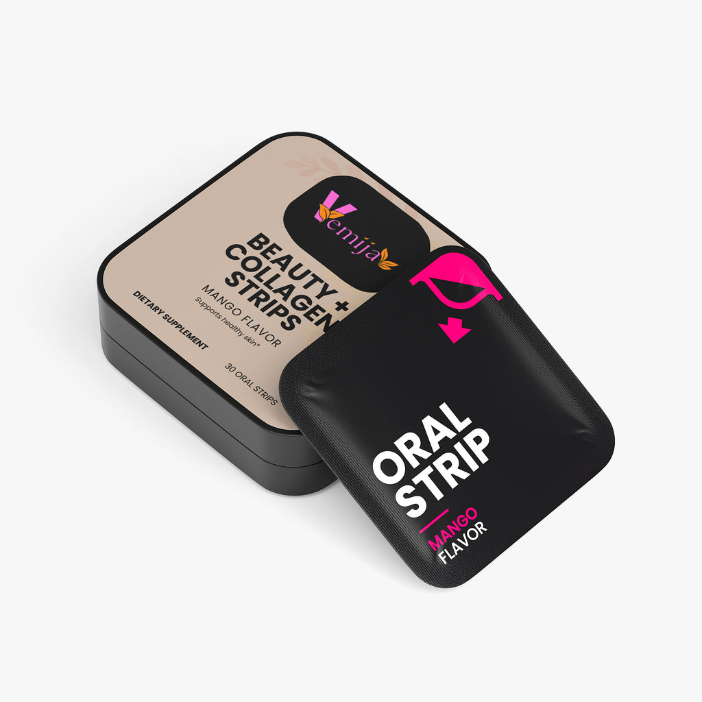 Simply place one oral strip on your tongue and allow it to dissolve — no water or swallowing required. Take one strip anytime during the day, up to a maximum of one strip daily. With a naturally-inspired mango flavor and a dissolvable strip format, Beauty + Collagen Strips make it easy and enjoyable to support your daily beauty and wellness goals as part of a healthy lifestyle.
